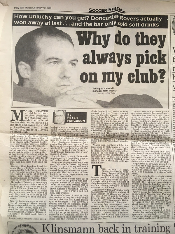 Tell you what is the most disgusting thing about that Mail piece though. Allowing that Kitson Weaver to call Doncaster Rovers "My Club". It was never yours, you cringing little piece of shit. It was ours. Always. You and your bas**rd boss just stole it for a while.