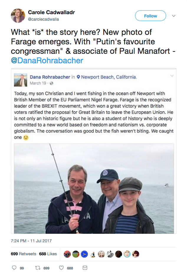 Oh aye. And Rohrabacher is also big buddies with someone else you might know, who visited Assange in the Ecuadorian embassy a couple of days before Wikileaks published the Clinton e-mails. You might know him.