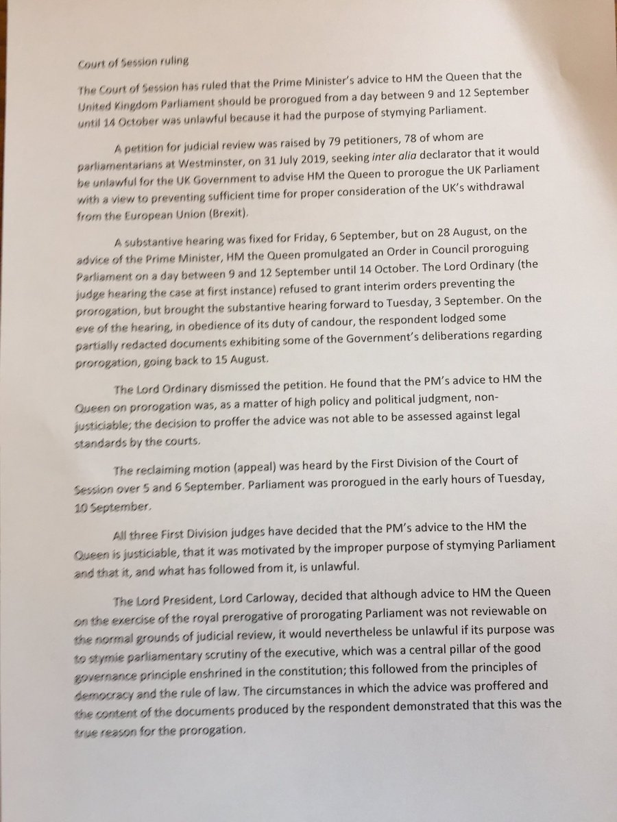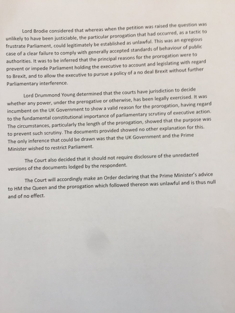 They concluded that the PM was attempting to prevent Parliament holding the government to account, ahead of Brexit''