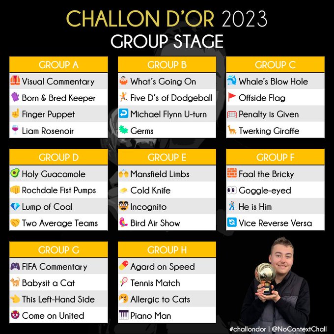 In December a Twitter account appeared called 'Out of Context Chall' which compiled short clips of Chall - one of our fans who posts online videos - saying daft things out of the original context. This then evolved in to a world-cup format vote to identify the best out of context clip. It was a bit of good fun, and some of the clips were really funny! He was presented the 'Challon-D'or' trophy by an unimpressed Ro-Shaun Williams at the end of the voting!