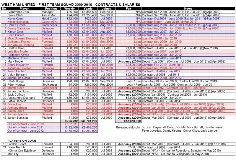 A mate who lives in Liverpool and supports Everton sent me an email with the West Ham players wages on. That makes your eyes water and not just the top earners. I dont know how to post it on here but if someone who does sends me their email address I'll send it on, Dave
